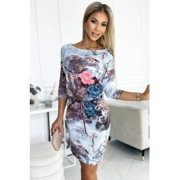Sportovní šaty se zavazováním, 3/4 rukávy a kapsami - květiny na kamenném pozadí. Vyrobeno z elastického materiálu s mírně semišovou strukturou. polský výrobek. značka numoco.