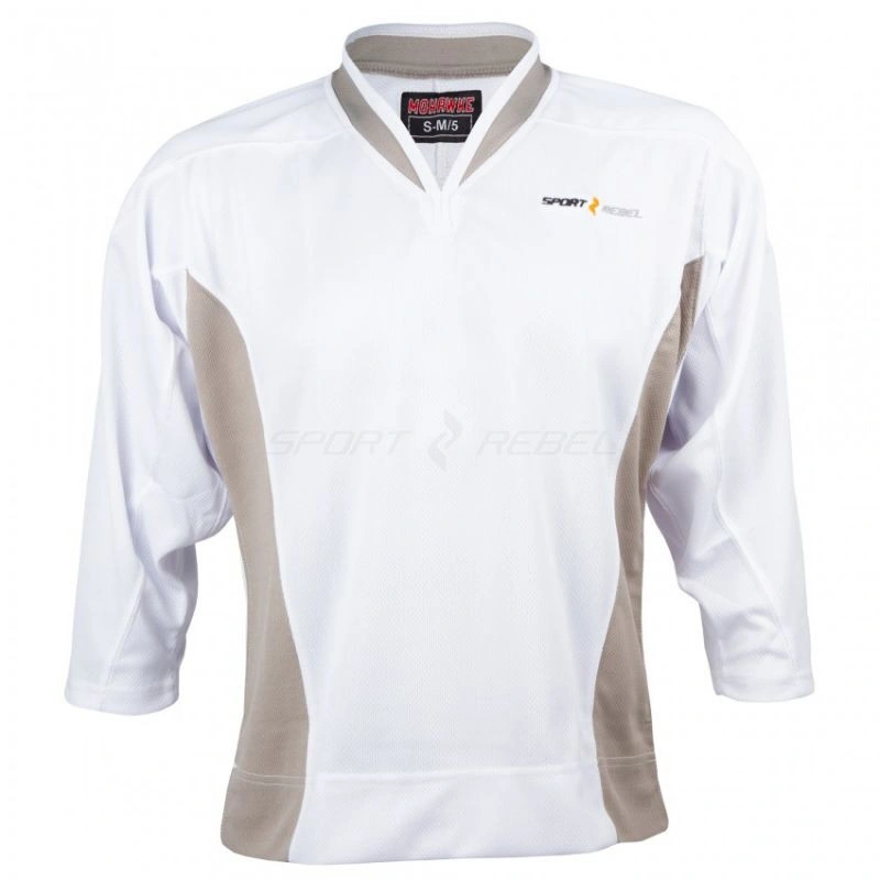 Standardní hokejový dres Ideální tréninkové tričko pro hokejistu Šedé boční panely Vyšívané logo Sportrebel Lze použít jako zápasový trikot Složení: 100% polyester Velikost: Senior