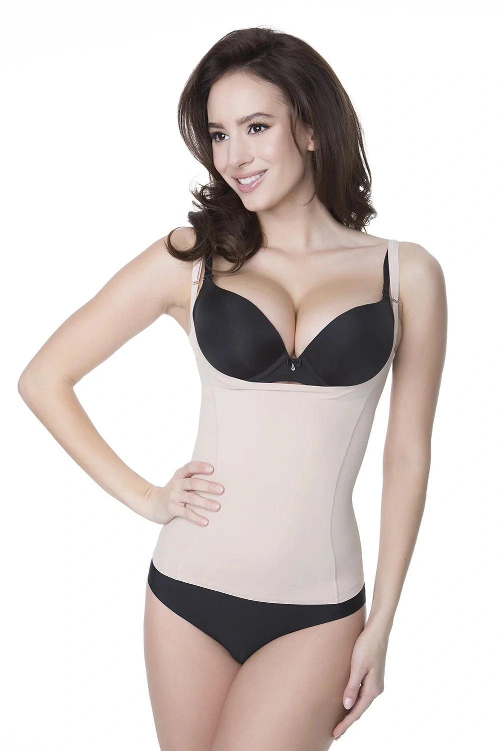 Model se nerýsuje pod oblečením díky moderní bezešvé technologii provedení okrajů technologie INVISIBLE-LINE. Košilka je ušitá z jemného a prodyšného materiálu. Model se ideálně přizpůsobuje postavě. Speciální látkové panely pružně zeštíhlují problémové partie, zeštíhlují bříško a pas. Díky silikonovému pásku se košilka při nošení neposouvá. Ramínka je možné nastavit, ale nelze je odepnout.