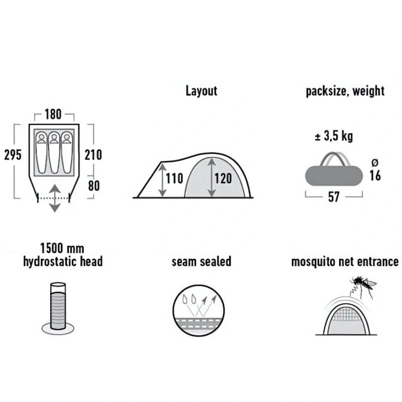 Technické údaje: Vnitřní stěna stanu je vybavena ochranným krytem, který je součástí stanu: