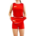Dámské tričko a výkonnostní sukně jsou vyrobeny z polyesteru. Díky kvalitnímu tkaní je tento materiál bezpečný pro pokožku, pružný (nemačká se), velmi odolný a odolný vůči špíně či skvrnám. Je ideálním kusem oblečení na soutěže nebo trénink. Odolává také častému praní, neabsorbuje nepříjemné pachy, nebarví se od deodorantů apod. Velmi snadno se udržuje a nezpůsobuje žádné problémy.