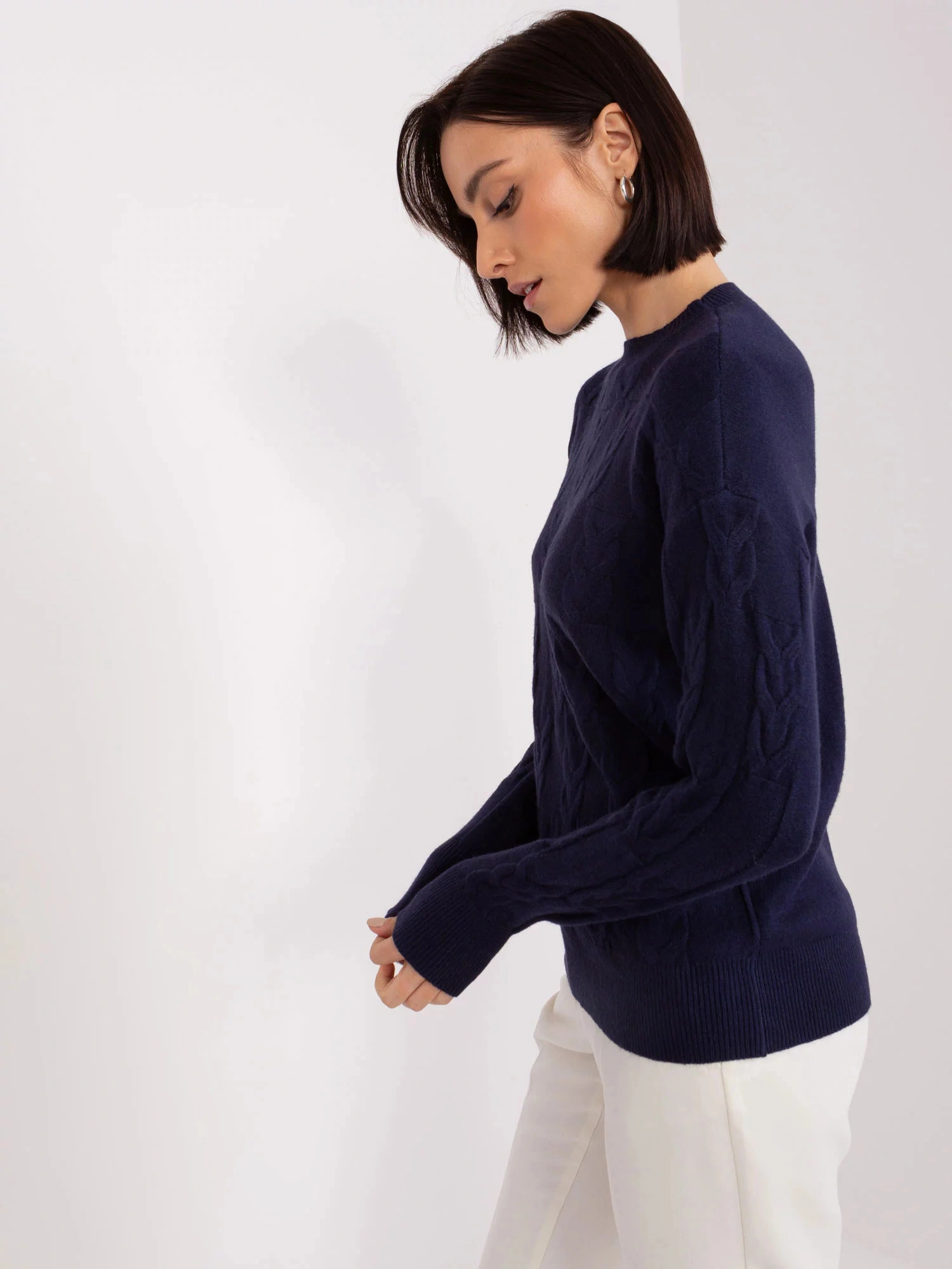 Námořnicky modrý kostkovaný svetr volného střihu .
