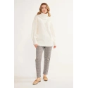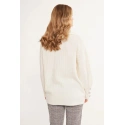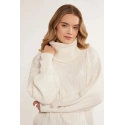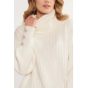 Dámský rolák volného střihu s ozdobným prošitím, vyrobený z materiálu příjemného na dotek. Golf s dlouhými, mírně nadýchanými rukávy s bižuterními knoflíky na koncích. Tento model bude jistě fungovat i v chladném počasí. Modelka na obrázku je 177 cm vysoká a má velikost 36.