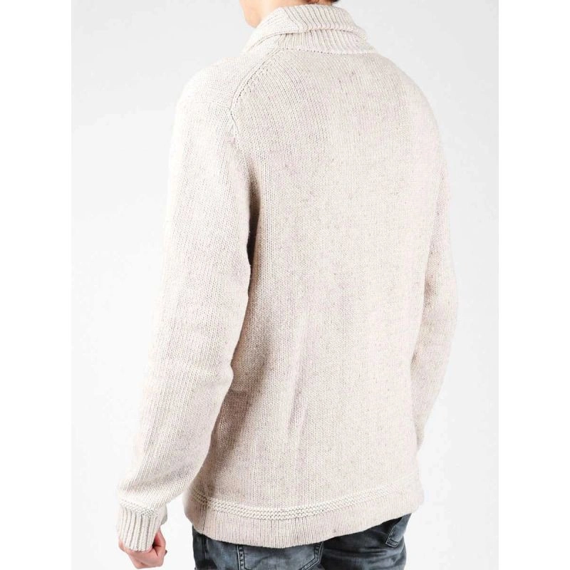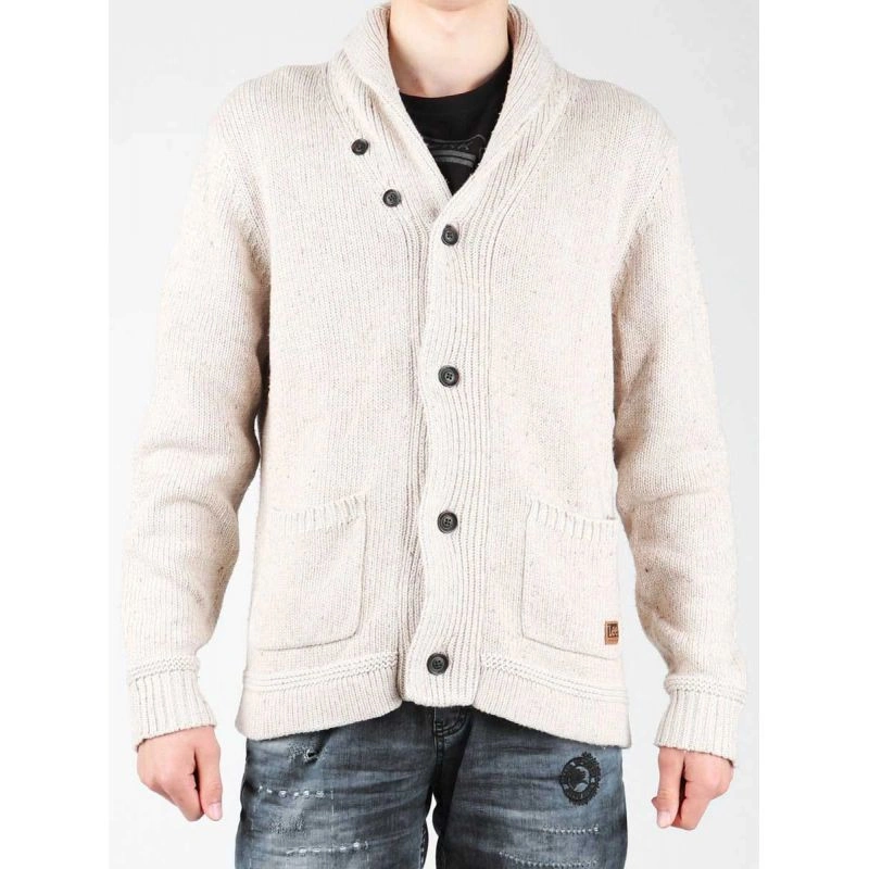 -Pánský svetr s dlouhými rukávy-Zapínání na knoflíky-Vysoký rozšířený límec-2 kapsy-Barva: bílá křída-Materiál: 79 % bavlna/ 11 % polyester/ 7 % akryl/ 3 % vlna