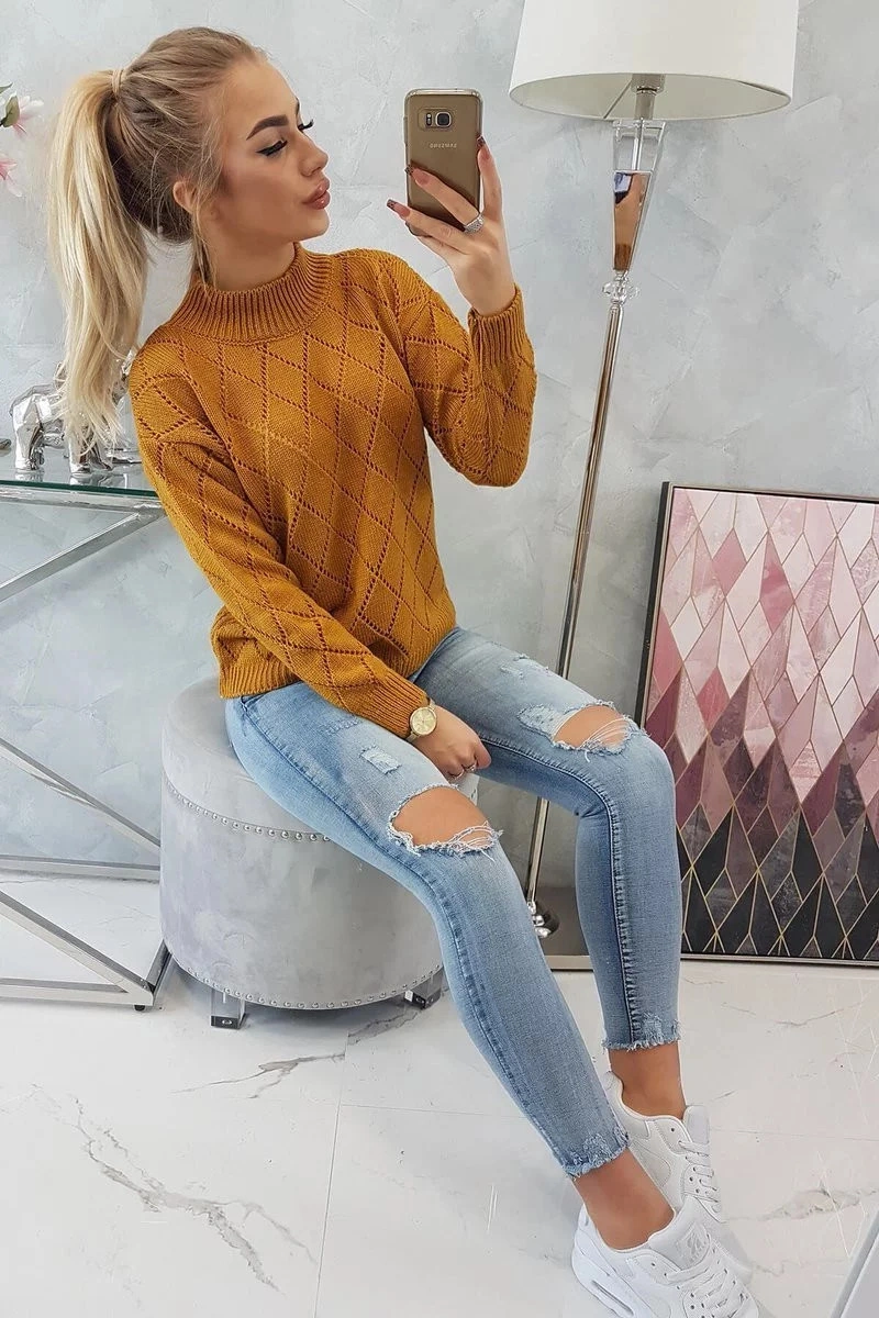 Představujeme vám rolákový svetr nošený přes hlavu. Svetr má módní diamantový vzor. Jednoduchý střih se bude hodit pro každou příležitost. Svetr je vyroben z vysoce kvalitního materiálu. Velikost je univerzální a bude vhodná pro dámy ve velikostech M, L, XL.