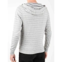 -Svetr s dlouhými rukávy a kapucí-Kapuce se stahovací šňůrkou-Model se zapíná na knoflíky-2 boční kapsy-Barva: šedá s pruhy-Materiál: 100% bavlna