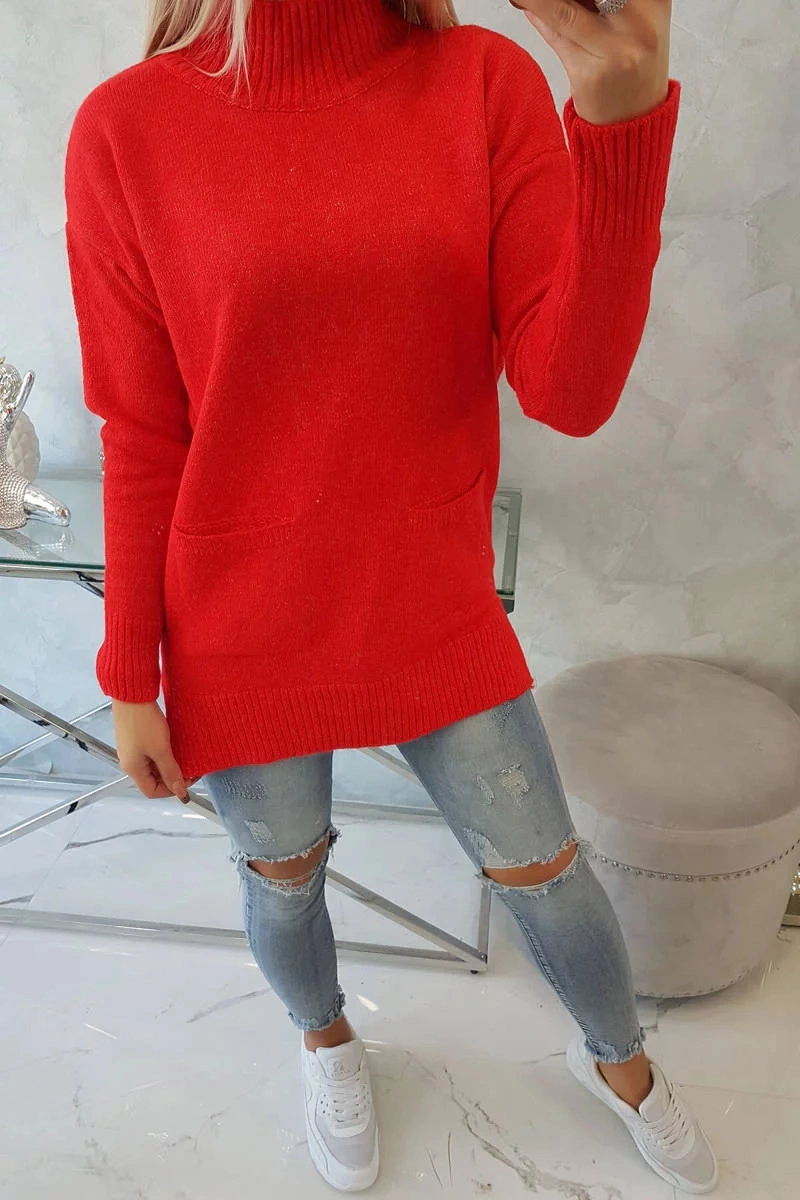 Představujeme vám módní svetr. Svetr má stojatý límec. Dvě kapsy na přední straně. Svetr nošený přes hlavu. Klasický střih ideální pro jakýkoli zimní vzhled. Hřejivé a příjemné na dotek. Svetr je vyroben z vysoce kvalitního materiálu. Velikost je univerzální a vyhovuje dámám ve velikostech M, L, XL.