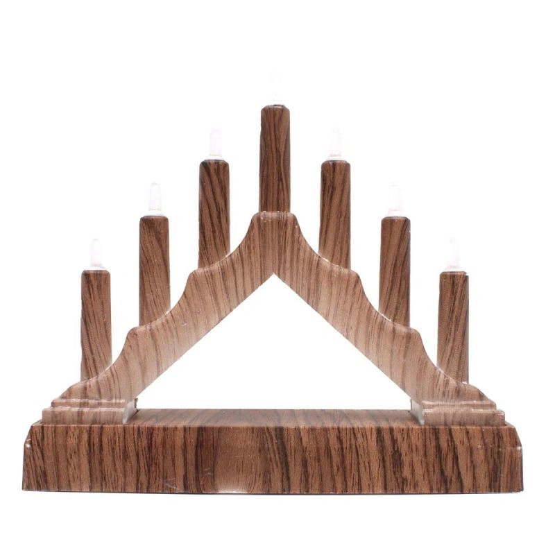 Moderní adventní svítidla mohou mít různé tvary, mohou být v glamour nebo ECO stylu, mohou být se třpytkami nebo se světly LED. Toto svítidlo má tradiční tvar a imituje 7 svíček usazených na dřevěném rámu.