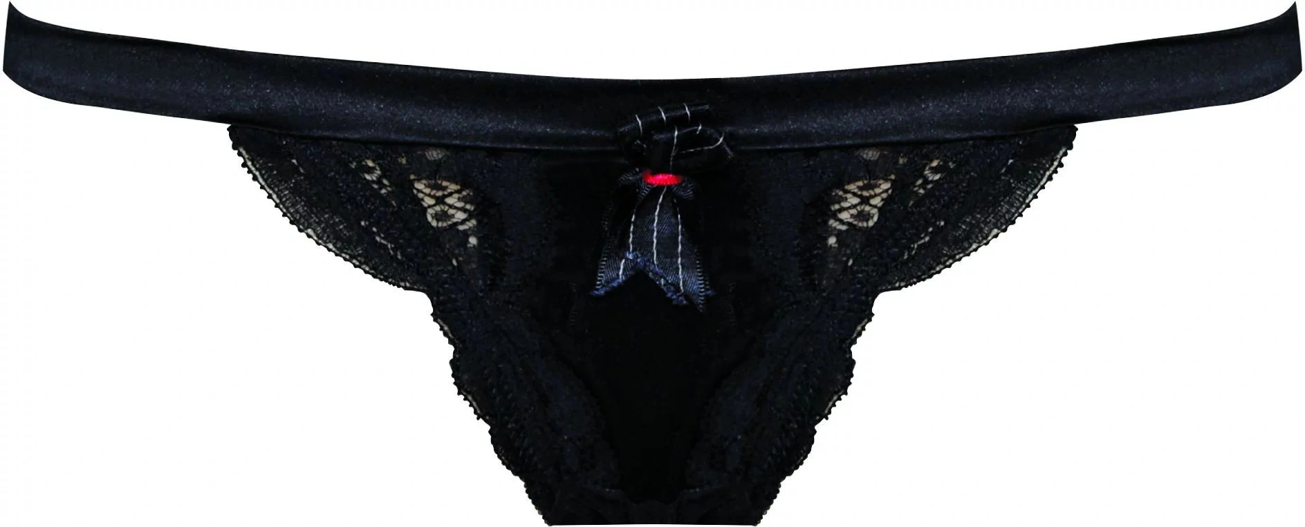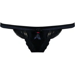 Krásná krajková tanga Pleasure State zvýrazněné saténovým lemem, doplněné červenou stuhou. Dobře padnoucí střih sexy vzhled.