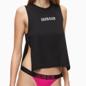 Černé tílko Calvin Klein je stylový kousek do každodenního šatníku. Díky jednoduchému designu s rozparky na stranách se hodí jak na běžné nošení, tak i na sportovní aktivity. Materiál složený z 50% bavlny a 50% modalu zaručuje pohodlí a příjemný pocit na těle.