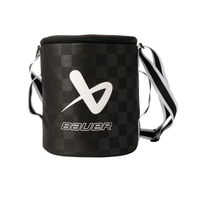 Taška na puky Bauer Taška na puky Bauer je praktické a odolné řešení určené pro trenéry, týmy a hráče, kteří potřebují mít neustále po ruce větší množství puků. Hlavní vlastnosti: Kapacita a funkčnost: Taška pojme více než 50 hokejových puků, což zajišťuje plnou připravenost na trénink a zápasy. Robustní konstrukce: Válcovitý tvar, zesílené stěny a materiál z odolného polyesteru 600D zaručují odolnost i při intenzivním používání. Pohodlná manipulace: Dvě pevná držadla a nastavitelný ramenní popruh umožňují pohodlnou přepravu tašky a přizpůsobení individuálním potřebám. Taška na puky Bauer je nepostradatelným doplňkem, který usnadňuje organizaci a přepravu a zefektivňuje každý trénink.