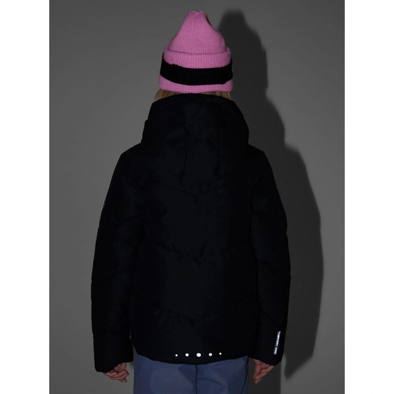 Funkční kapsy na zip a kapsa na skipas usnadňují uložení drobných předmětů. Hladká podšívka zvyšuje komfort nošení, zatímco reflexní prvky zlepšují viditelnost za zhoršených světelných podmínek.