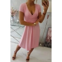 Modní šaty mají střih pod prsa a krátké rukávy. Spodní část šatů je rozšířená, tento model je vhodný i pro těhotné ženy. Šaty jsou vyrobeny z vysoce kvalitního materiálu. Velikosti od S do 4XL. Materiálové složení: 90% viskóza 10% Elastan Rozměry v tabulce jsou uvedeny v centimetrech: Modelka prezentuje velikost S.