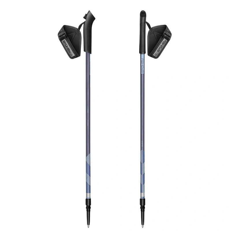 Teleskopowe kije Nordic Walking wykonane z wytrzymałego aluminium, wyposażone w wygodny system amortyzacji Antishock, który absorbuje wstrząsy podczas marszu. Dwusegmentowa konstrukcja z regulacją wysokości w zakresie od 95 do 135 cm umożliwia łatwe dopasowanie długości kijów do wzrostu użytkownika. Po złożeniu do najmniejszej wielkości zajmują niewiele miejsca. Wyposażone w ergonomiczne uchwyty oraz odpinaną rękawiczkę z elementem odblaskowym. Kije zakończono widiowymi grotami odpowiedzialnymi za trwałość i wykazującymi podwyższoną odporność na ścieranie. W zestawie znajdują się gumowe końcówki do marszu po twardej nawierzchni oraz wymienne talerzyki na sezon letni. Dane techniczne: materiał: aluminium 6061 ilość sekcji: 2 rączki: PP antishock mocowanie rękawiczki: WYPINANA zapięcie sekcji kija: wewnętrzne grot: widłowy talerzyk: wymienny waga (2 kije): 440 g długość: 95 - 135 cm dodatkowo: gumowe końcówki do kijów Informacje dotyczące bezpieczeństwa: Po prze