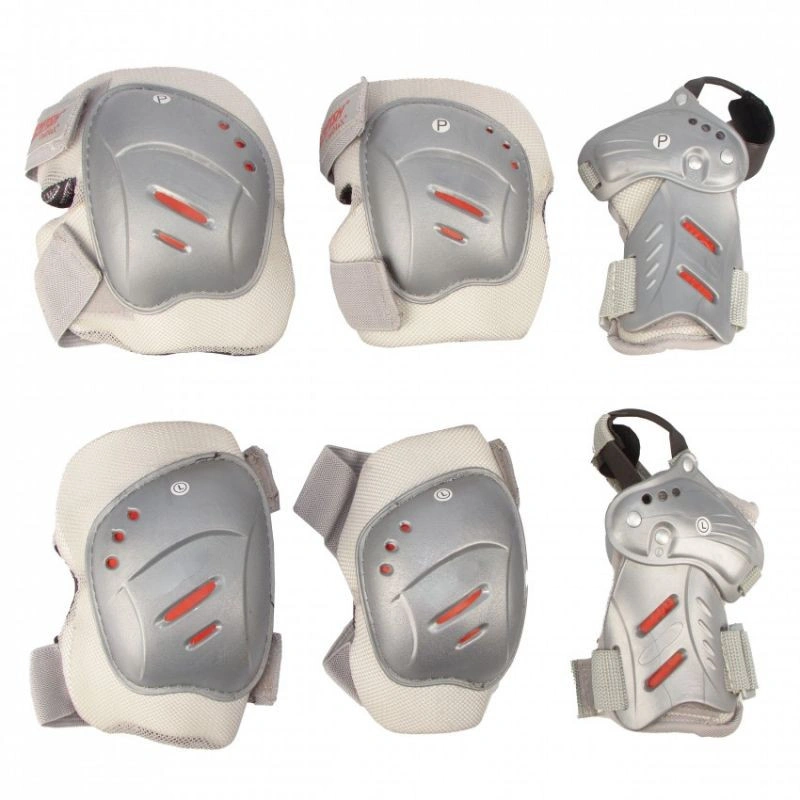 Chrániče zápěstí, kolen, loktů a zápěstí Tempish Coolmax 3-dílné Velmi pohodlná sada chráničů kolen, loktů a zápěstí. Materiál CoolMax zajišťuje, že pot je odváděn od těla k chrániči a velmi rychle se odpařuje. Chrániče jsou estetické, díky promyšlenému designu zůstávají pevně na chráněných kloubech jak při jízdě, tak při pádu. Díky své estetice a velikosti je model velmi oblíbený zejména u dívek a žen. Sada chráničů kolen, loktů a zápěstí - velikosti S, M, L, XL