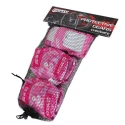 Základní chrániče kolen, loktů a zápěstí na kolečkových bruslích Upevněné páskem na suchý zip pro snadné nasazení a sejmutí Tyto chrániče poskytují standardní ochranu proti pádům a nárazům při jízdě a standardní úroveň ochrany Sada chráničů kolen, loktů a zápěstí Barevné varianty: Růžová, Blaсk Velikosti: XS lokty 21 cm, 24 cm kolena S lokty 23 cm, 27 cm kolena M lokty 28 cm, 32 cm kolena