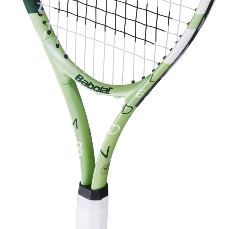 Babolat Wimbledon 25 Junior mint 140529 Tato tenisová raketa Babolat je vhodná pro rekreační tenis, určená pro děti. Design je inspirován londýnským grandslamem Wimbledon, konstrukce je vyrobena z hliníku a rukojeť je předem omotaná. Technické údaje:- věk: 9-10 let nebo výška: 130-140 cm- velikost rukojeti: L0- materiál: hliník- hmotnost (bez strun): 220 g- délka rakety: 635 cm / 25- vzor strun: 16x19- vyvážení: 31,5- plocha hlavy: 685 cm² / 106- omotávka: předem omotaná- tovární napětí: ano- potah v balení: ne