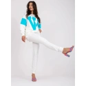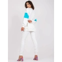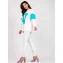 Rozměry soupravy ve velikosti S/M měřené na plocho: šířka halenky v podpaží - 65 cm, délka rukávů - 63 cm, délka halenky - 72 cm, šířka kalhot v pase - 34 cm, délka kalhot - 102 cm, výška pasu - 27 cm.