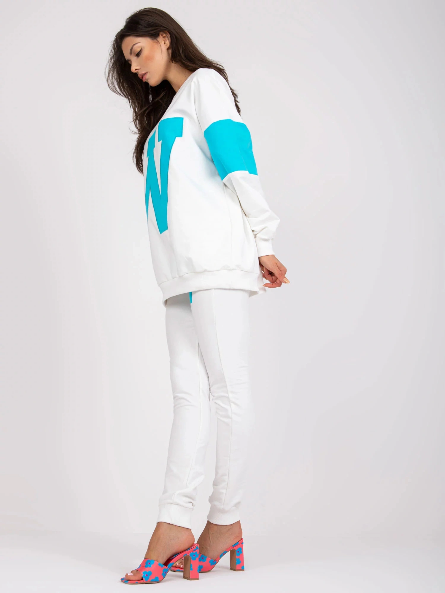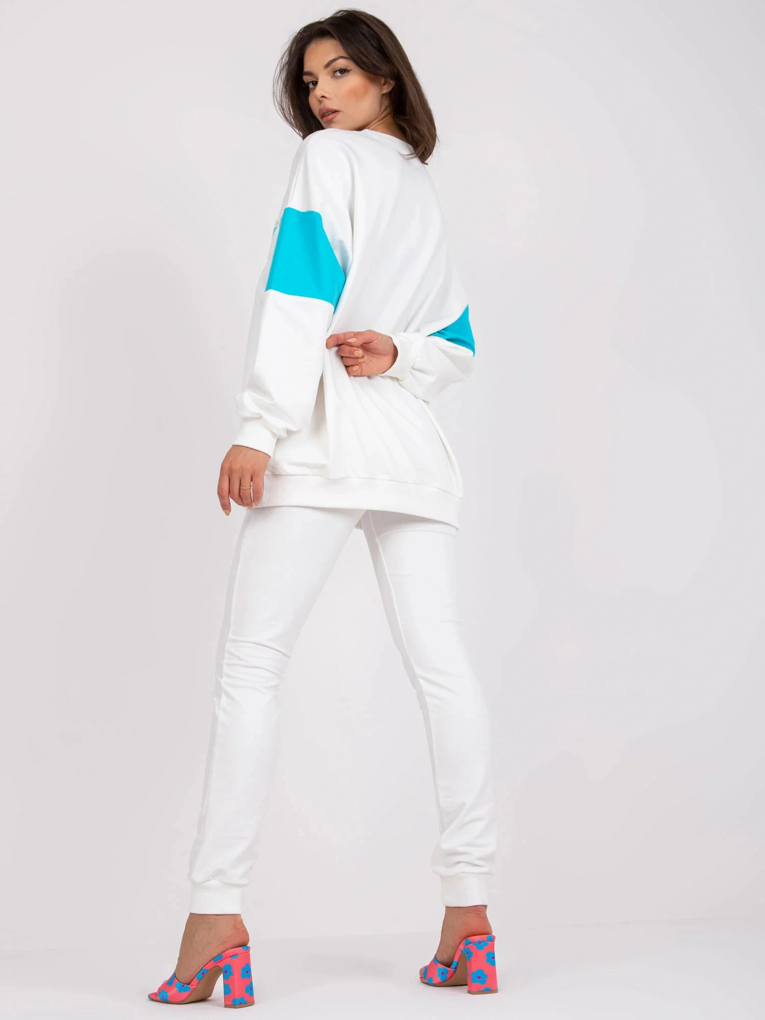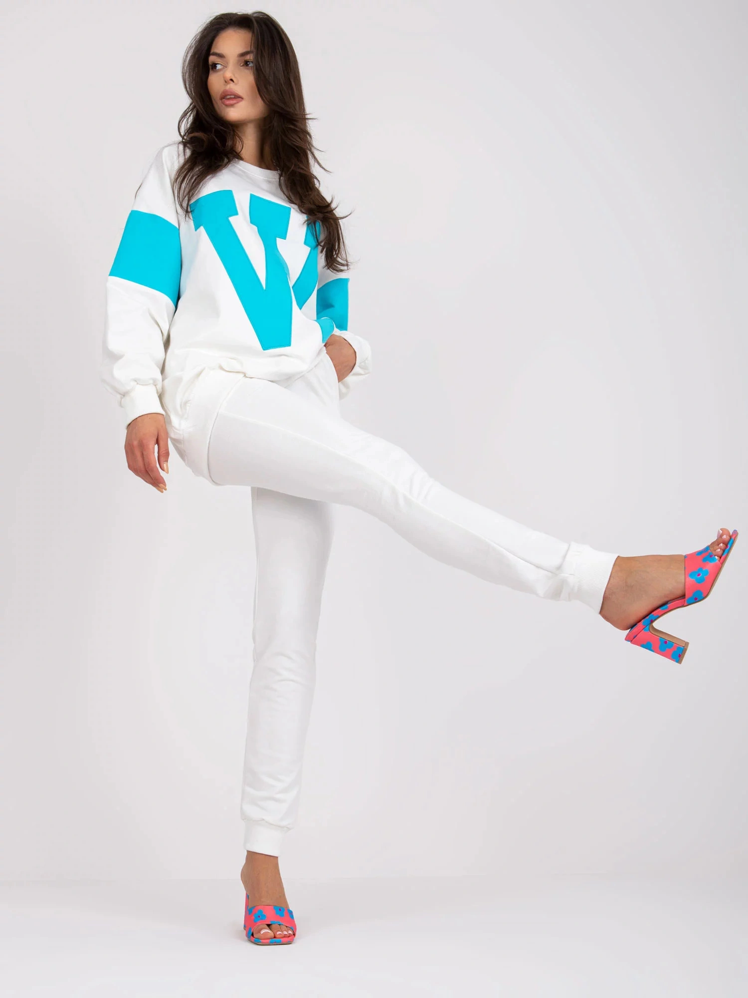 Rozměry soupravy ve velikosti S/M měřené na plocho: šířka halenky v podpaží - 65 cm, délka rukávů - 63 cm, délka halenky - 72 cm, šířka kalhot v pase - 34 cm, délka kalhot - 102 cm, výška pasu - 27 cm.