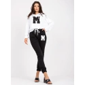 Rozměry soupravy ve velikosti S/M měřené na plocho: šířka v podpaží - 64 cm, délka halenky - 57 cm, délka rukávů - 64 cm, šířka v pase - 36 cm, délka kalhot - 98 cm