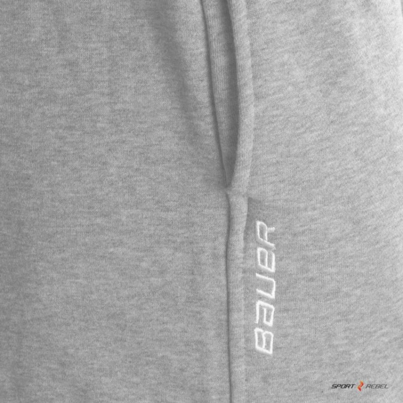 Tepláky Bauer, ideální pro trénink i každodenní nošení Mají elastický pas a šňůrku na stažení Dvě boční kapsy na švu Nohavice jsou podšité fleecem a zakončené šňůrkou na stažení Vpředu na pravé straně je vyšité logo Bauer Materiál: 80 % bavlna, 20 % polyester, uvnitř 300 g fleece