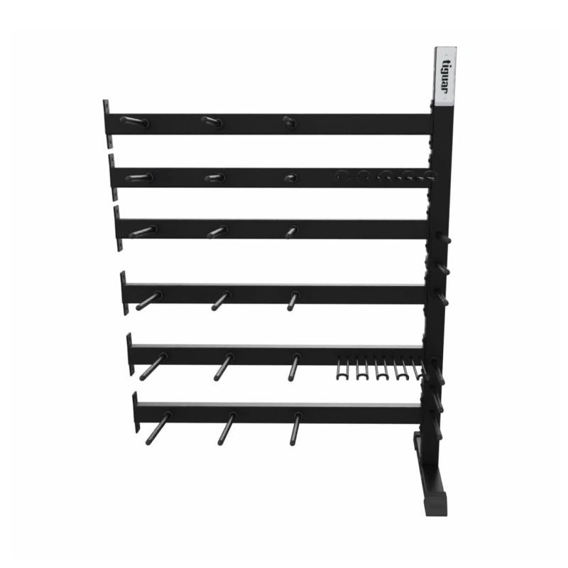 Dodatkowy moduł profesjonalnego stojaka służącego do pionowego przechowywania sztang typu powergym oraz butterfly w siłowniach i klubach fitness. Ergonomiczna konstrukcja rozwiązania łączy w sobie funkcję stojaka na gryfy oraz wieszaka na obciążenie, skutecznie zastępując dwa pojedyncze akcesoria. Uwaga! Produkt wymaga wersji podstawowej, do której będzie zamontowany. Modułowa konstrukcja Podstawowa wersja stojaka modułowego na powergym 22/24 szt. pozwala na przechowywanie gryfów w pozycji pionowej i może pomieścić odpowiednio: 22 komplety tiguar powergym (obciążenia plus gryf) 24 komplety tiguar butterfly (obciążenia plus gryf) Dodatkowy moduł pozwala na rozbudowanie stojaka podstawowego i dwukrotne zwiększenie jego pojemność. Dzięki temu możliwe jest swobodne dostosowanie rozwiązania do indywidualnych potrzeb klienta oraz przechowywanie większej ilości obciążeń i gryfów w łatwo dostępnej i wygodnej formie. Dodatkowy moduł montowany jest do nogi stojaka podstawowego