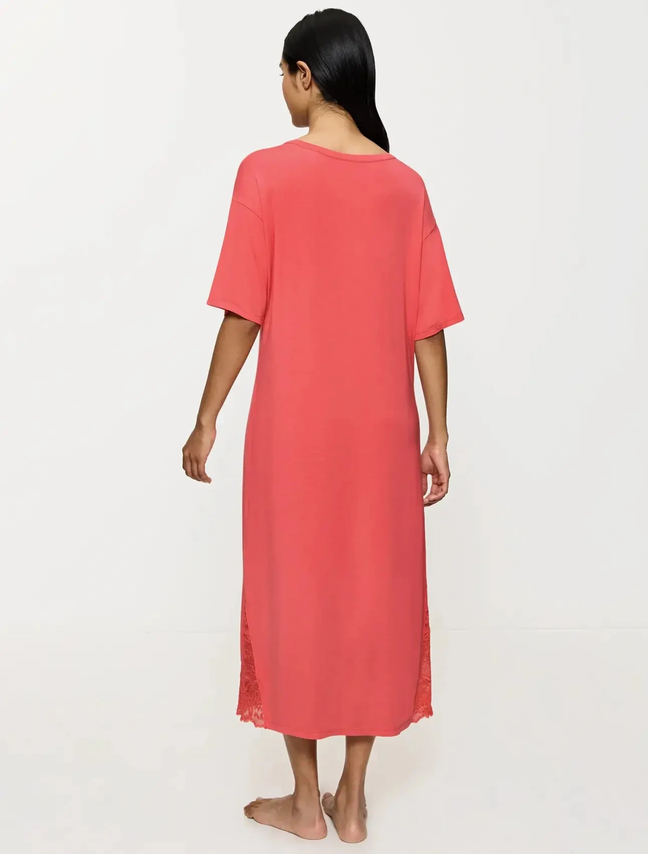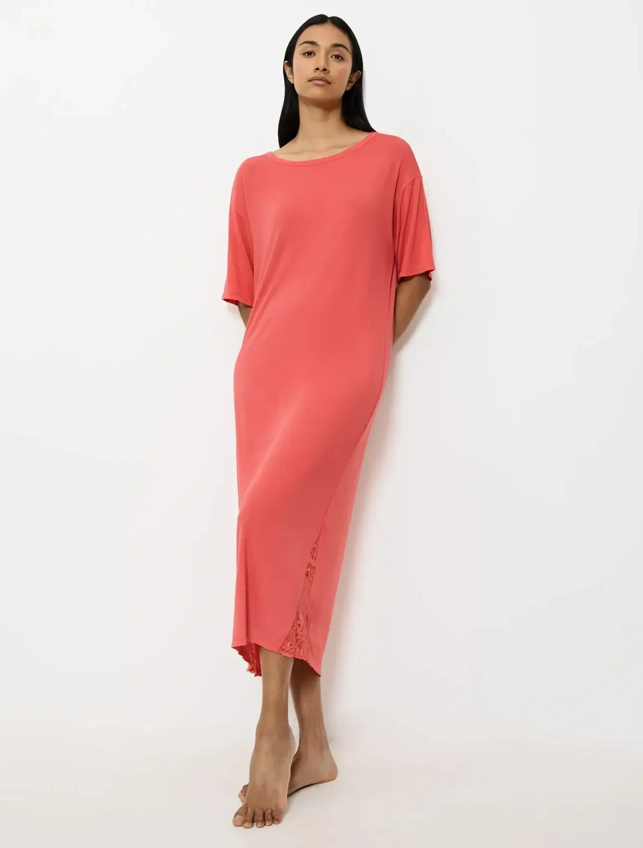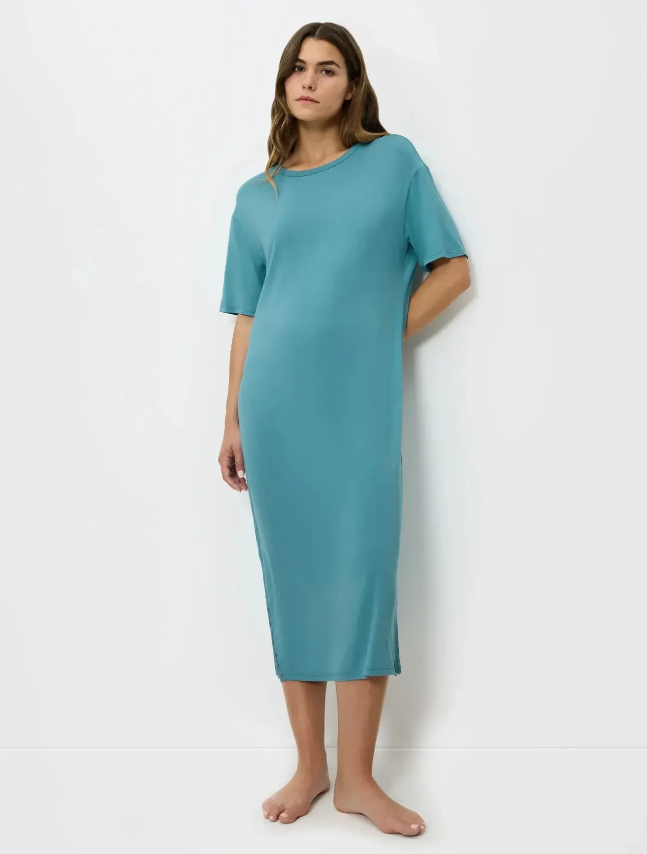 - Noční košile s krátkými rukávy v pohodlném a lichotivém střihu v délce přes kotníky