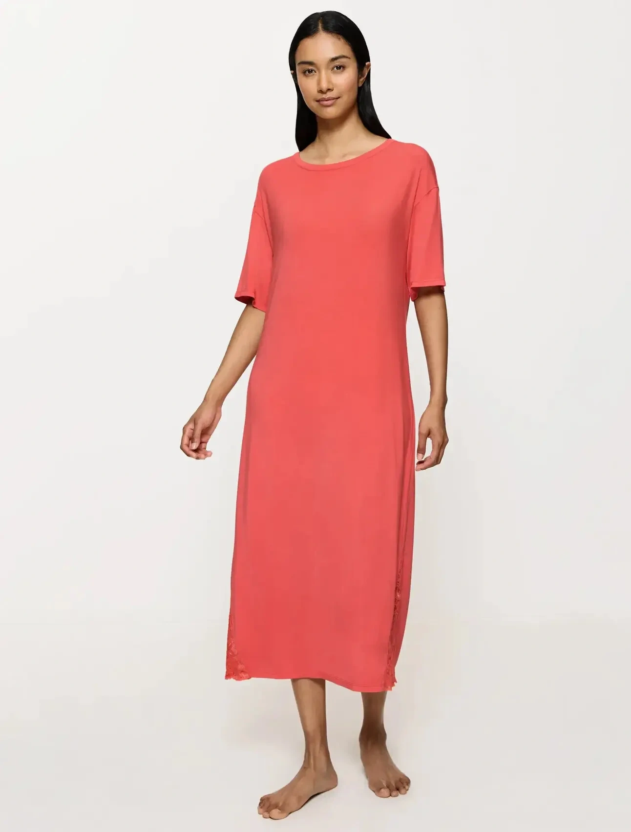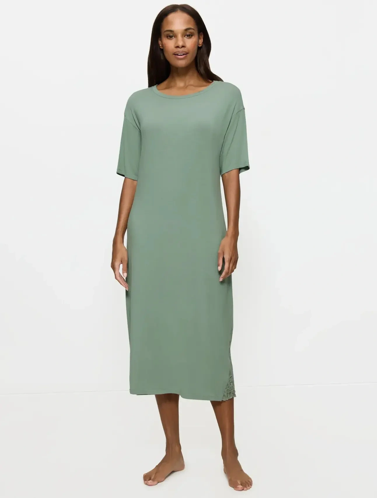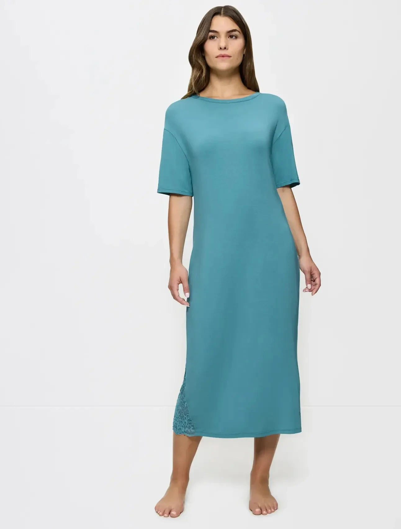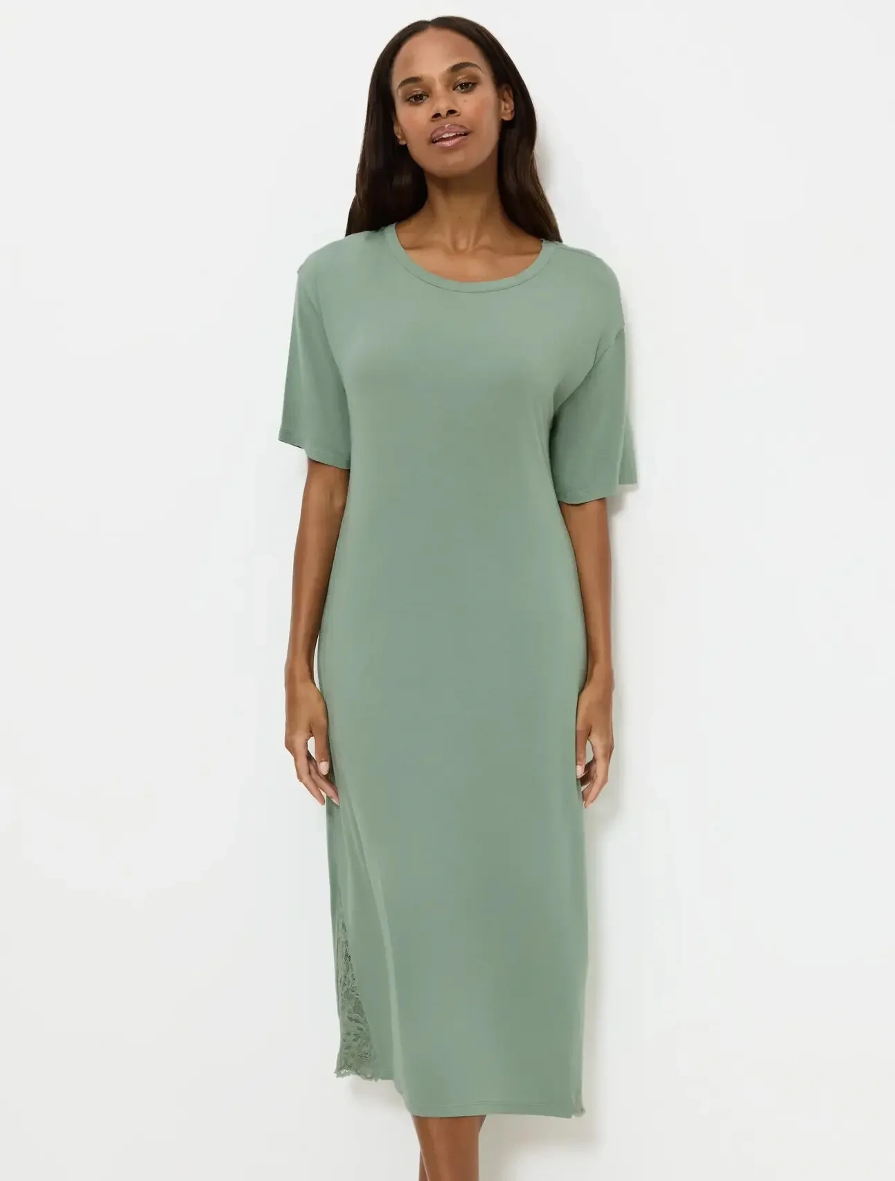 - Noční košile s krátkými rukávy v pohodlném a lichotivém střihu v délce přes kotníky