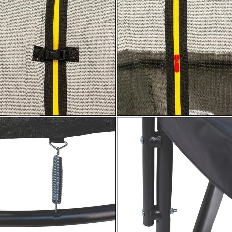 Je vybavena speciálními silnými kryty pružin, které je ochrání před vnějšími vlivy a zabrání kontaktu nohou s nimi při výstupu nebo sestupu, zatímco speciální tvar sloupků podpírajících síť ideálně ochrání uživatele před nárazy do nich.