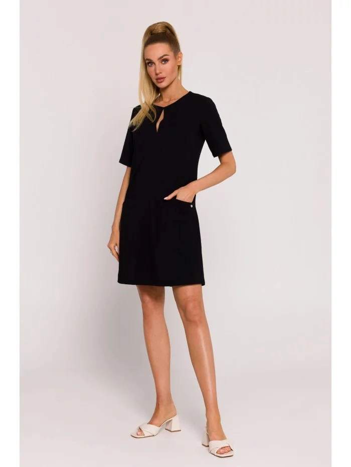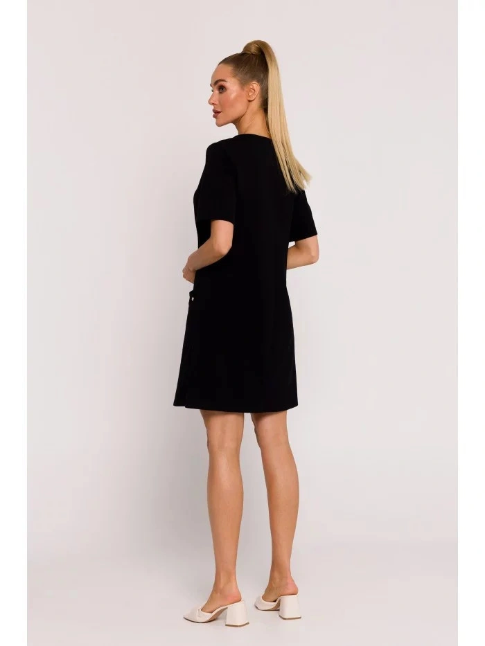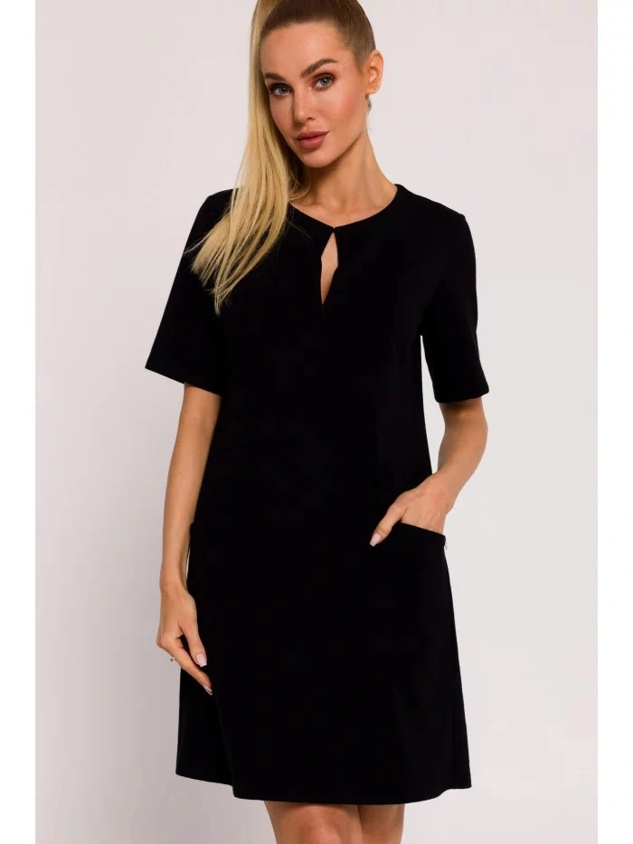 INFORMACE O PRODUKTU: úpletová tkanina áčkové šaty s krátkými rukávy výstřih s klíčovou dírkou přední kapsy ve švu s ozdobným odznakem s logem bez podšívky naše modelka je vysoká 171 cm a nosí velikost S navrženo a vyrobeno v Polsku