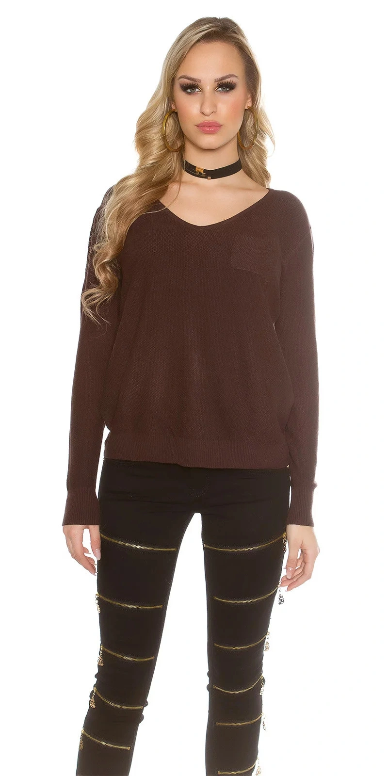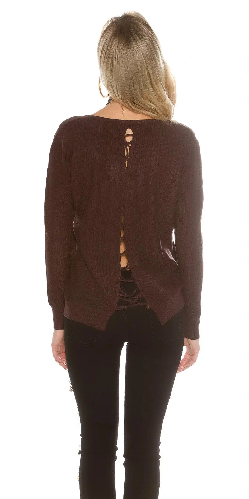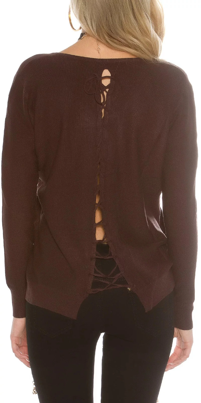 Sexy dámský svetr s kulatým výstřihem, dlouhé rukávy. Vzadu stahování na šňůrku.