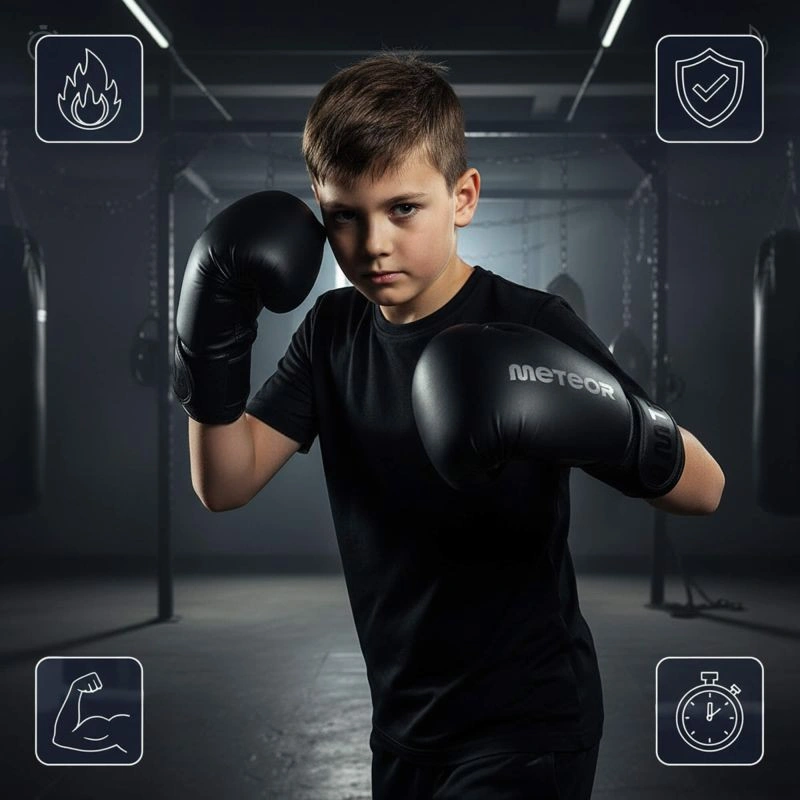 Boxerské rukavice Meteor kombinují pohodlí, odolnost a vynikající ochranu. Jejich anatomický tvar a měkké polstrování zajišťují maximální pohodlí a bezpečnost při tréninku.