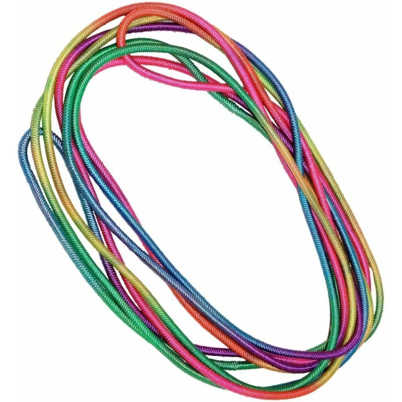 Barevná, 5 m dlouhá guma není napevno svařená v místě spoje, takže umožní libovolnou vzdálenost mezi účastníky nebo libovolný objekt, např: strom, pokud si dítě hraje samo.