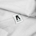 Velké kontrastní logo na přední straně upozorňuje na minimalistický tvar