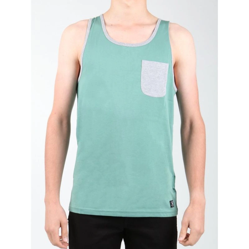 -Zelená pánská košile bez rukávů -Kulatý výstřih -Kapsa na hrudi -Materiál: 100% bavlna