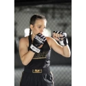 Volný střih zajišťuje plnou volnost pohybu při cvičení a je doplněn logem vztahujícím se k bojovým sportům.