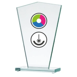 Skleněná trofej s barevným potiskem LuxorJet, gravírováním a inkoustovou výplní