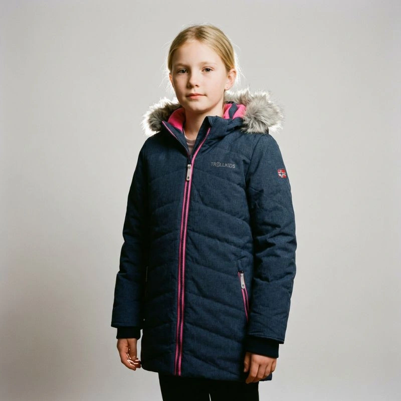 - Tato dívčí zimní bunda poskytuje vynikající ochranu před chladem díky lehké polyesterové výplni a voděodolné, větruodolné tkanině.