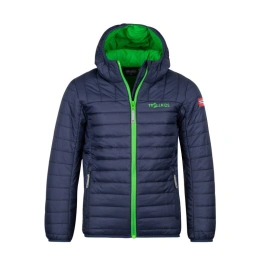 Popis Trollkids Kids Eikefjord Jacket navy/bright green (463-100) ultralehká dětská přechodná bunda pro chlapce/dívky