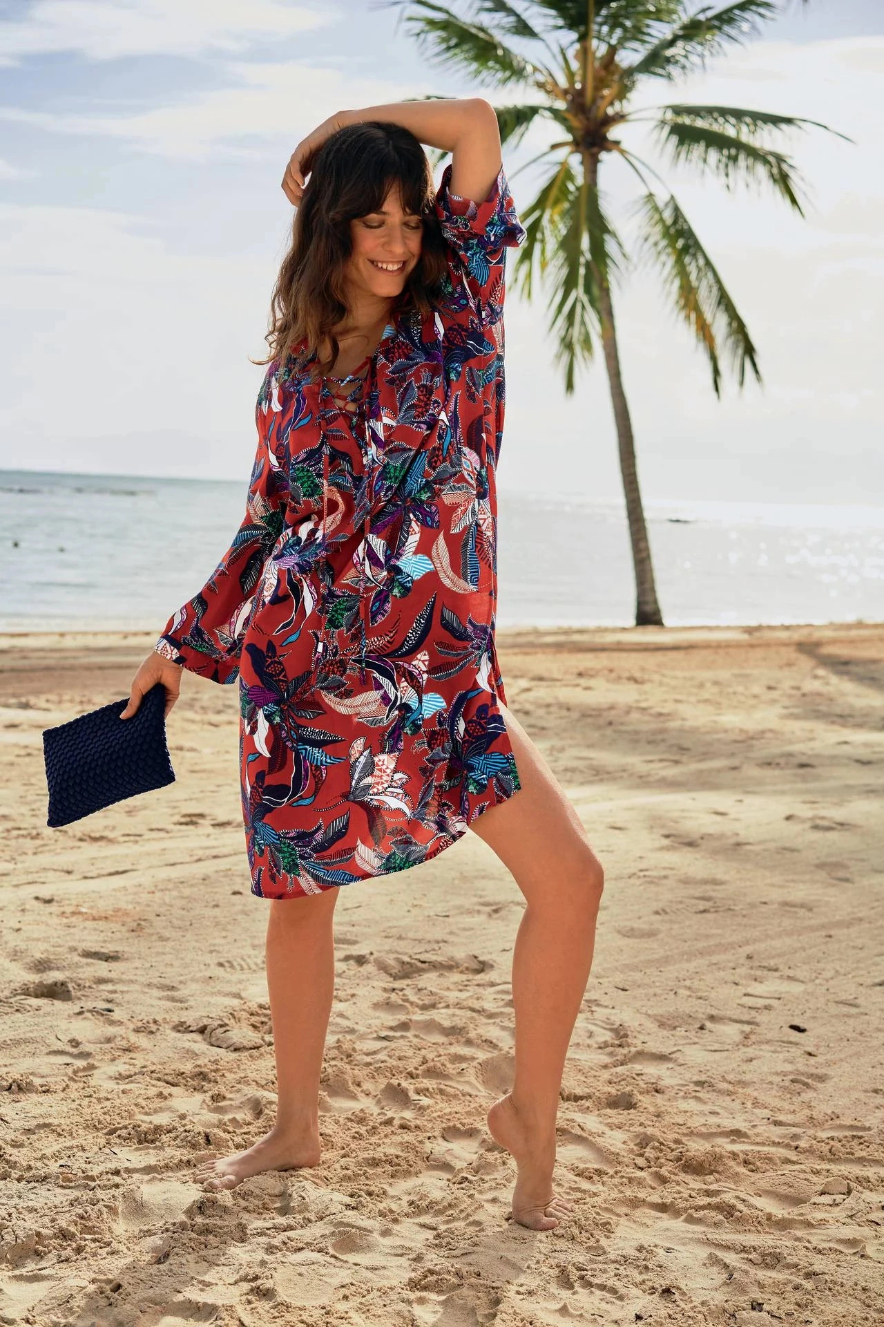 Perfektní pro váš další výlet na pláž: neprůhledná tunika Lucena se pyšní výrazným indickým potiskem ze série ''Indian Life''. Měkká, splývavá tkanina umožňuje pohodlné nošení, zatímco boční rozparky a široké ¾ rukávy poskytují dostatek volnosti pohybu. Rozkošné šněrování na výstřihu dokonale zvýrazní dekolt.