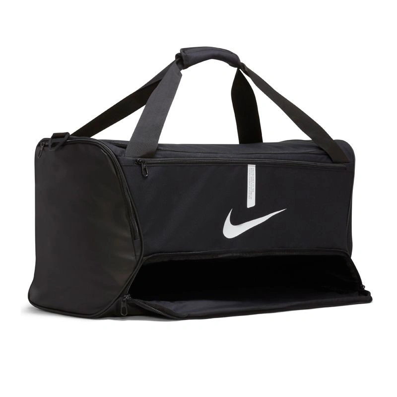 Taška Nike Academy Team má odolnou konstrukci a umožňuje udržet si pořádek. Speciální přihrádky poskytují prostor pro uložení míče, dresů a oblečení, zatímco několik popruhů vám dává možnost přenášet vybavení cestou na hřiště. Hlavní přihrádka je dostatečně prostorná, aby se do ní vešel míč a další věci.