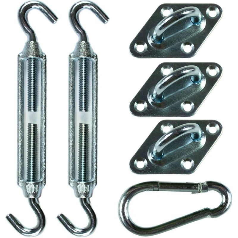 Všechny prvky jsou vyrobeny z odolných materiálů, které dobře odolávají dešti, UV záření a větru, což zaručuje, že po instalaci bude plachta sloužit svému účelu po mnoho sezón. Sada nerezaví a nedeformuje se při zatížení.