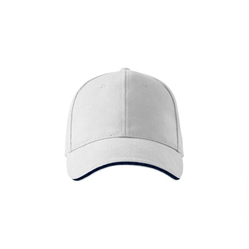 Kombinovaný kepr, 100 % bavlna, šestipanelový střih, spojené 2 přední panely, vyšívaný, mírně prohnutý kšilt s kontrastním proužkem, vyšívané větrací otvory, pásek absorbující pot, nastavitelná velikost pomocí mosazné spony