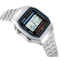 Unisex digitální hodinky Casio A168WA s náramkem z nerezové oceli, stříbrné
