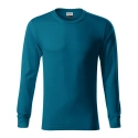 Jednoduchý žerzej, 100 % předsrážená nesmršťující se bavlna, praní na 95 °C (bílá) a 60 °C (barevná), střih s bočními švy, výstřih z žebrového úpletu 1:1, ramenní zpevňující šev, dlouhé rukávy s manžetami, manžety z žebrového úpletu 1:1, výrobek je k dispozici ve dvou variantách: se štítkem v bočním švu nebo bez něj (viz vzorník barev). Varianta se štítkem pouze do vyprodání zásob.