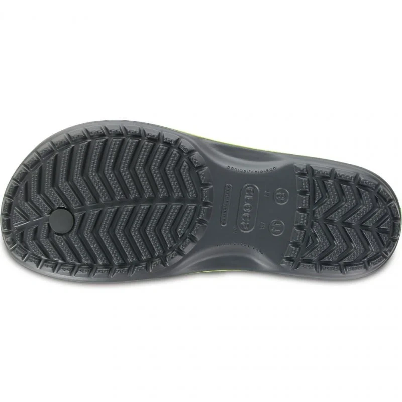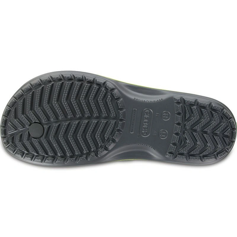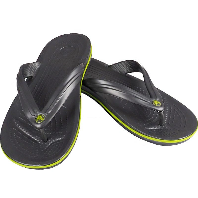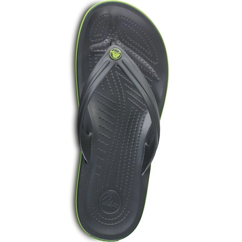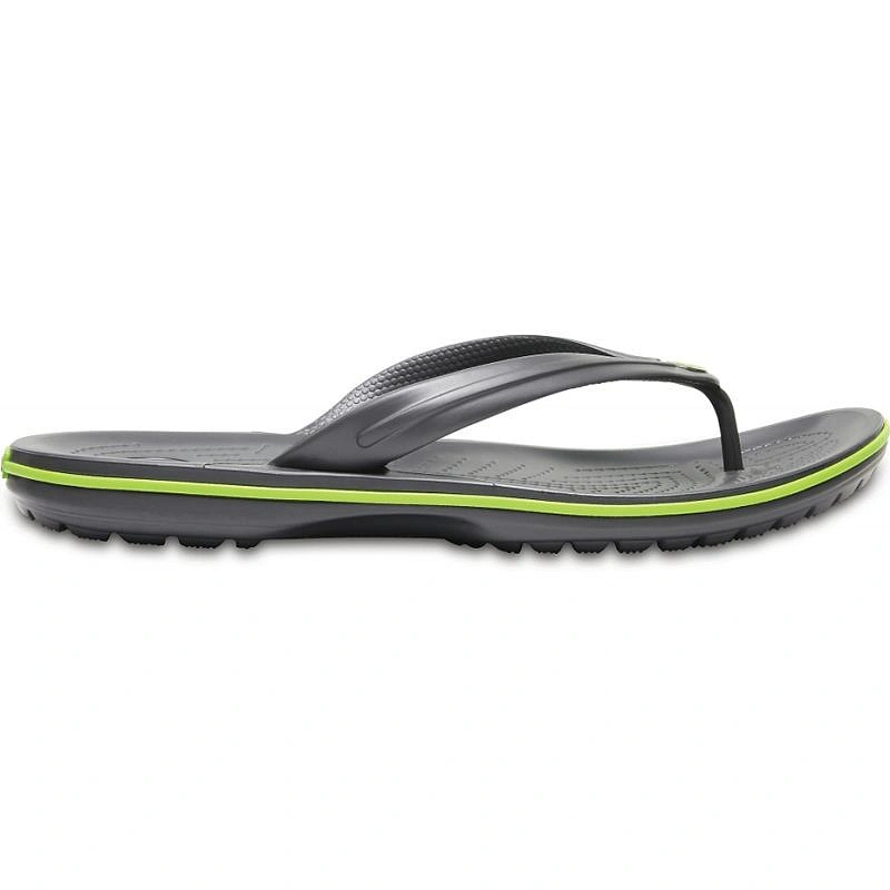 - Žabky Crocs v grafitové barvě se zelenými prvky.