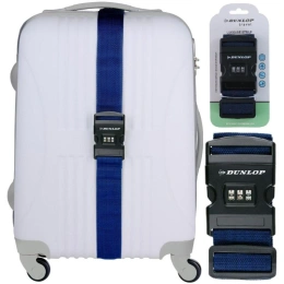 uNIVERZÁLNÍ BEZPEČNOSTNÍ PÁS NA KUFRY DUNLOP 200x5CM MODRÝ ochrání vaše zavazadla před nechtěným otevřením a pomůže vám odlišit se od ostatních kufrů na letišti.