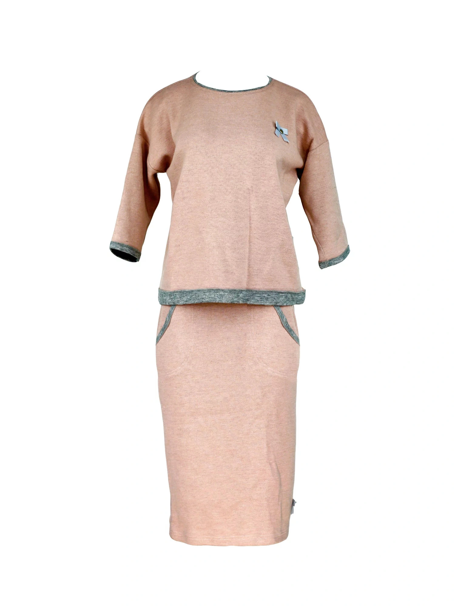 Úpletový kostým M36635 Image pudrová s šedou 46