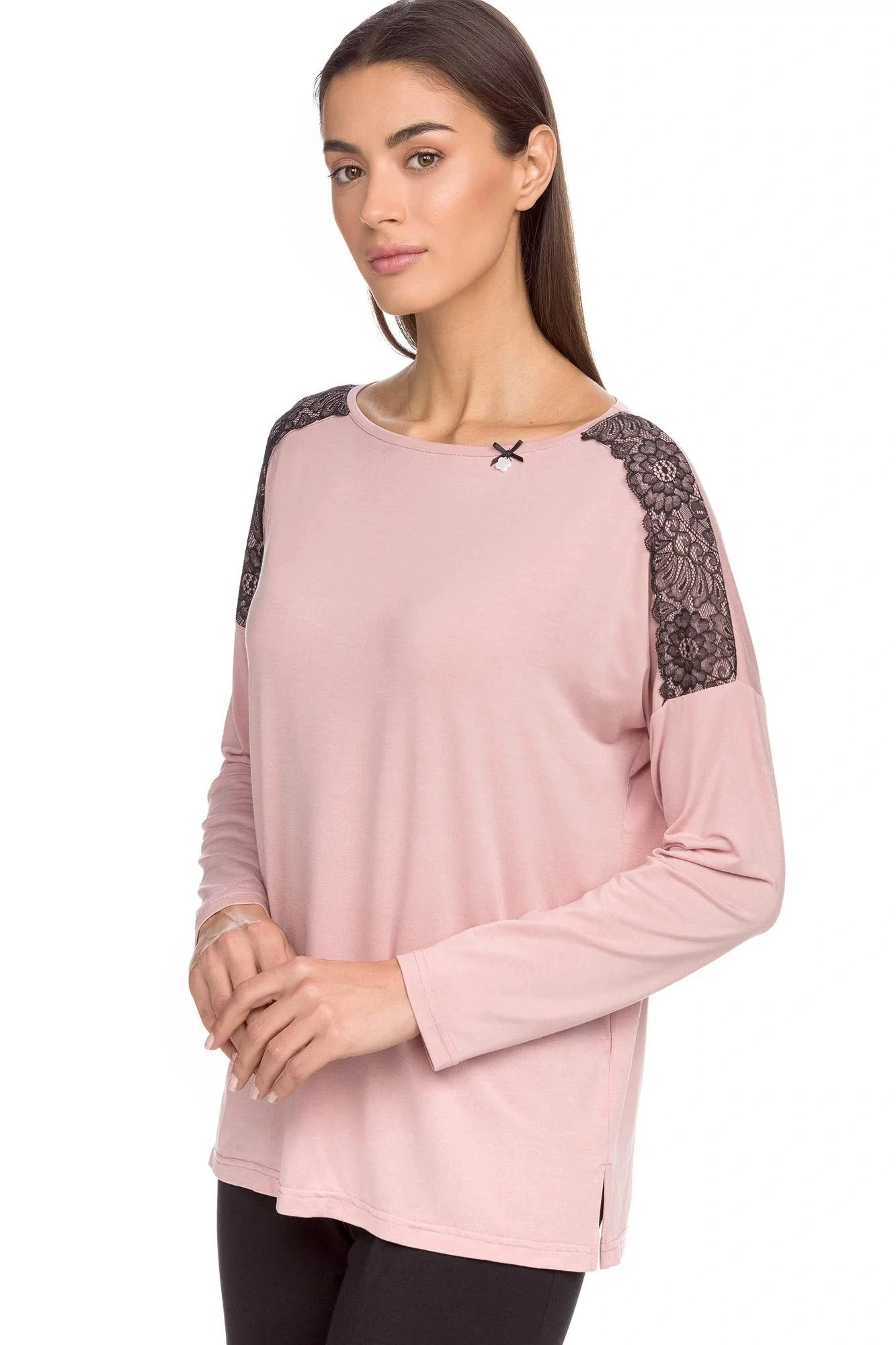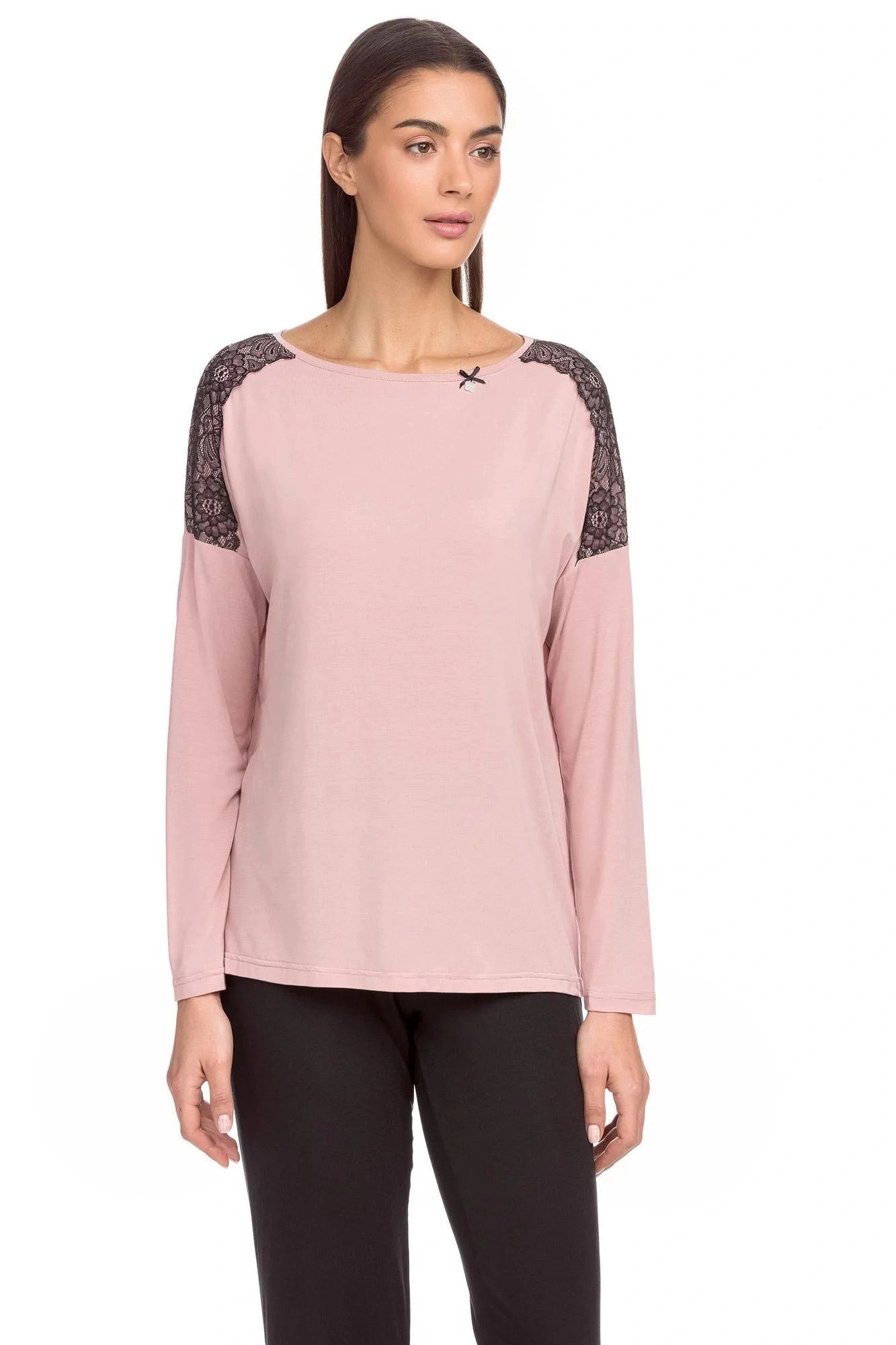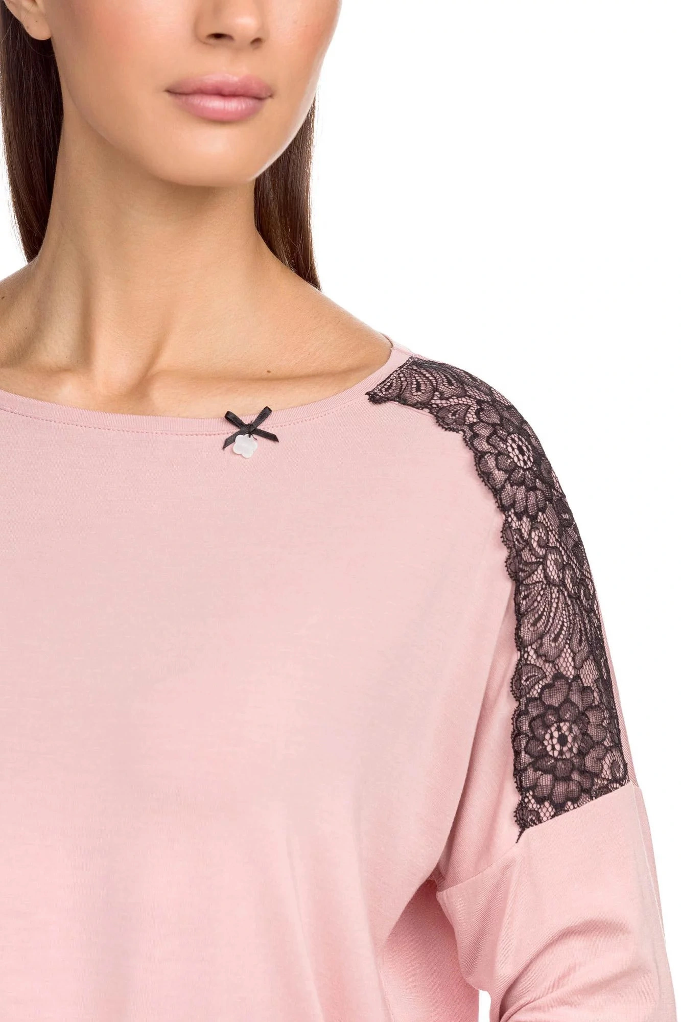 Dámské pyžamo od značky CoCoon Secret - top s 3/4 rukávem - výstřih do V zdobený krajkou a mašličkou