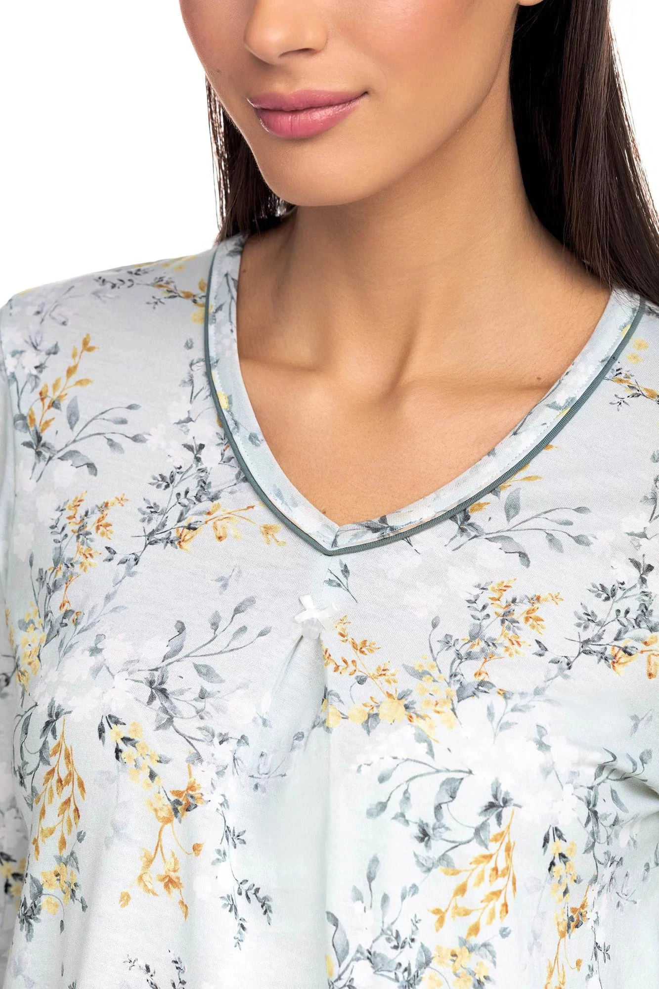 Dámské pyžamo s květovým motivem pro pocit vyjímečnosti a pohodlné spaní. Set tvoří jednobarevné kal